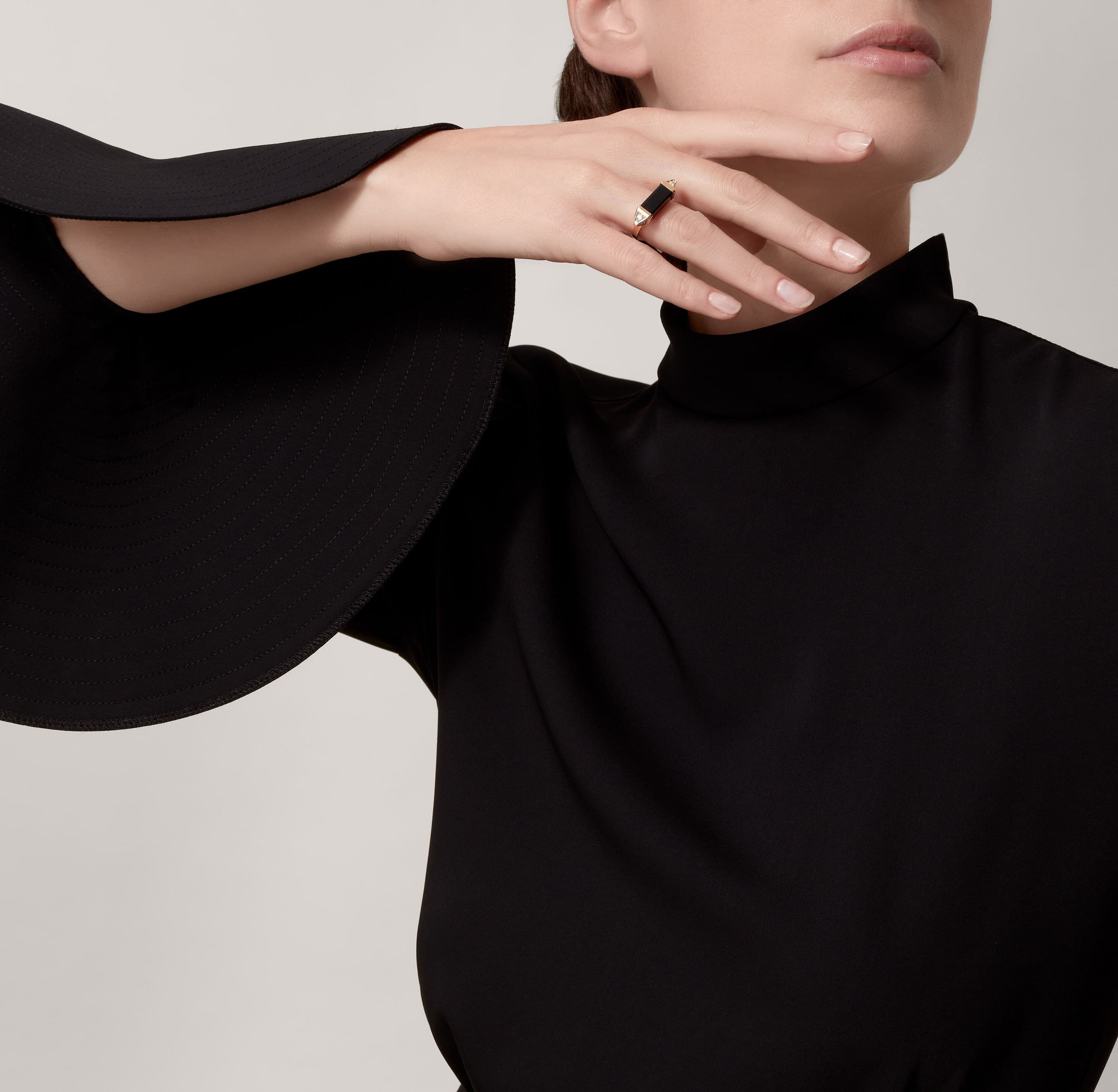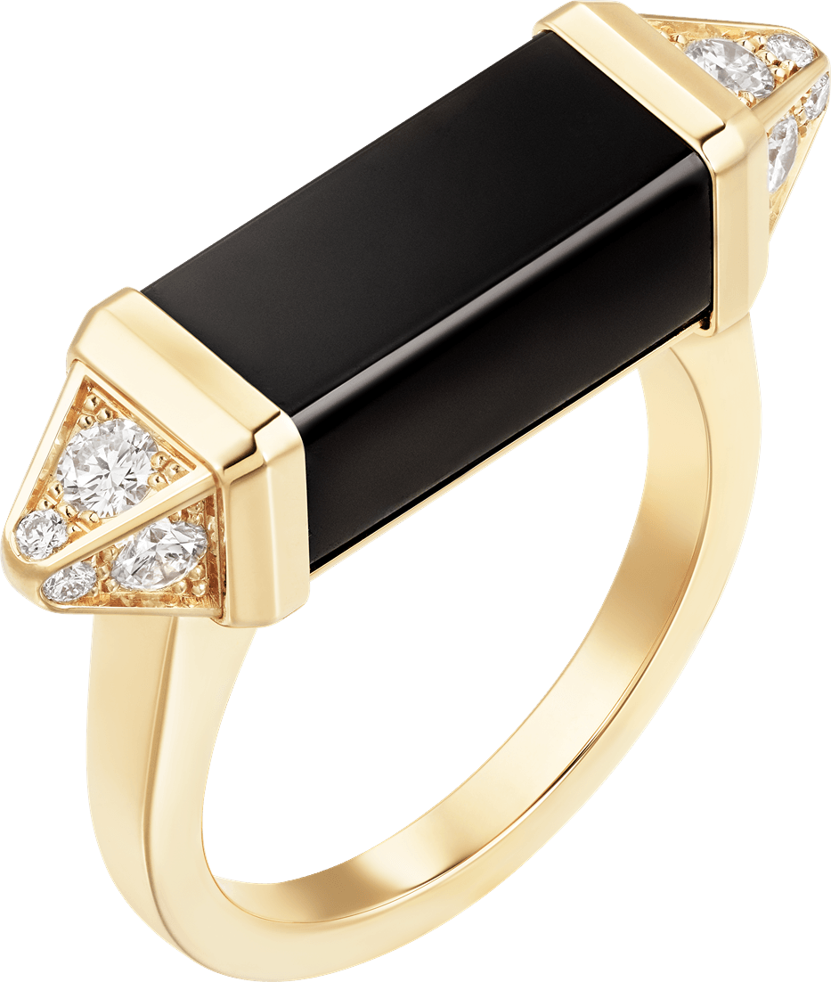 Anillo Les Berlingots de Cartier, oro amarillo 750/1000, ónix, engastado con 12 diamantes talla brillante con un total de 0,33 quilates (para la talla 52).