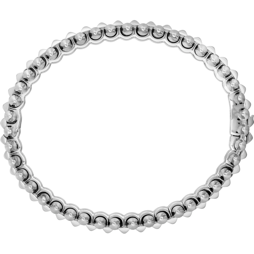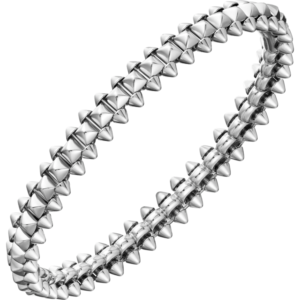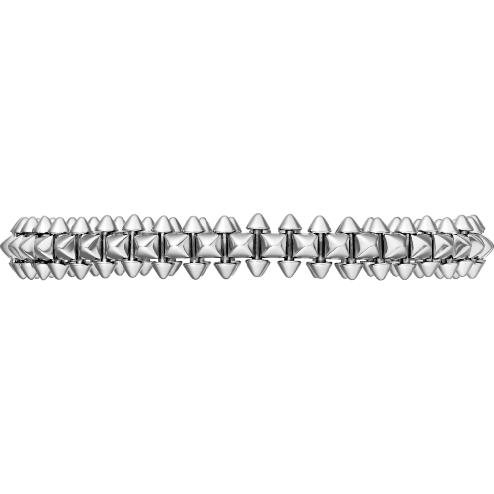 Clash de Cartier renueva el patrimonio estético de la Maison. Picots, cuentas y clous carrés componen la distintiva malla geométrica y móvil de esta joya emblemática.