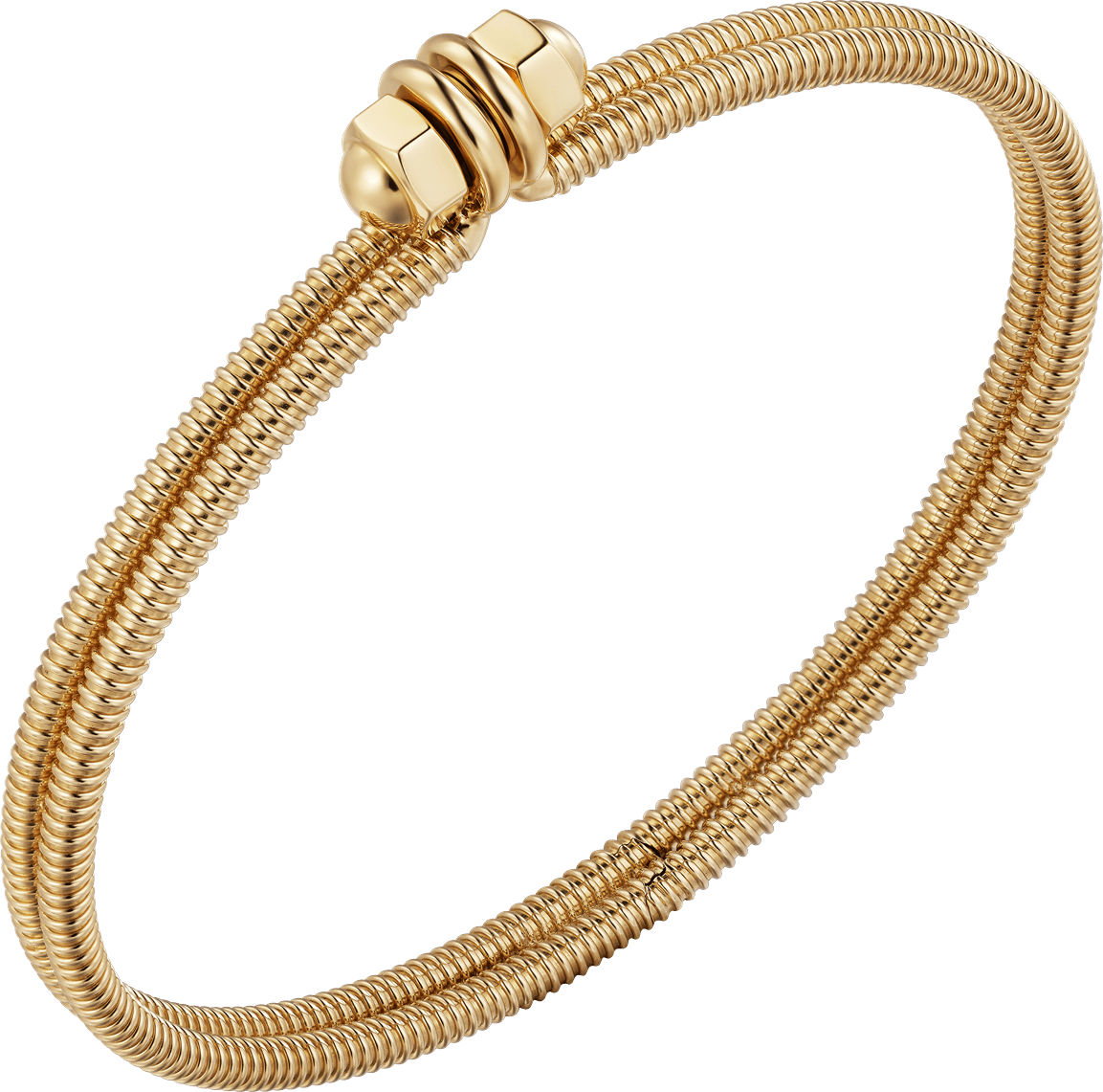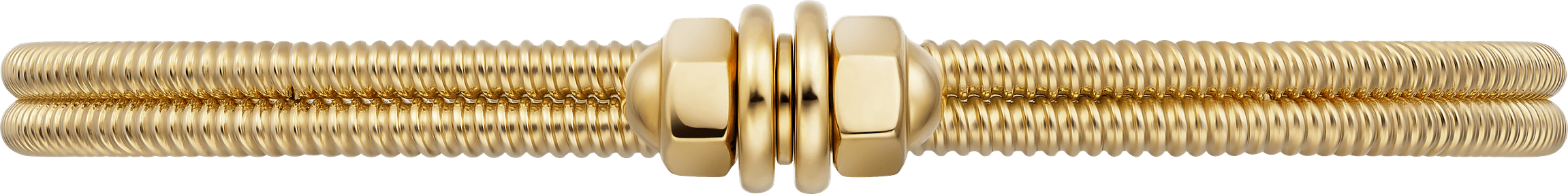 Écrou de Cartier es la expresión del estilo audaz y moderno de un joyero que trasciende el día a día. Lo común se torna precioso, la tuerca se convierte en joya: un brazalete singular caracterizado por códigos poderosos y determinados. Pulsera Écrou de Cartier, oro amarillo 750/1000. Oro amarillo