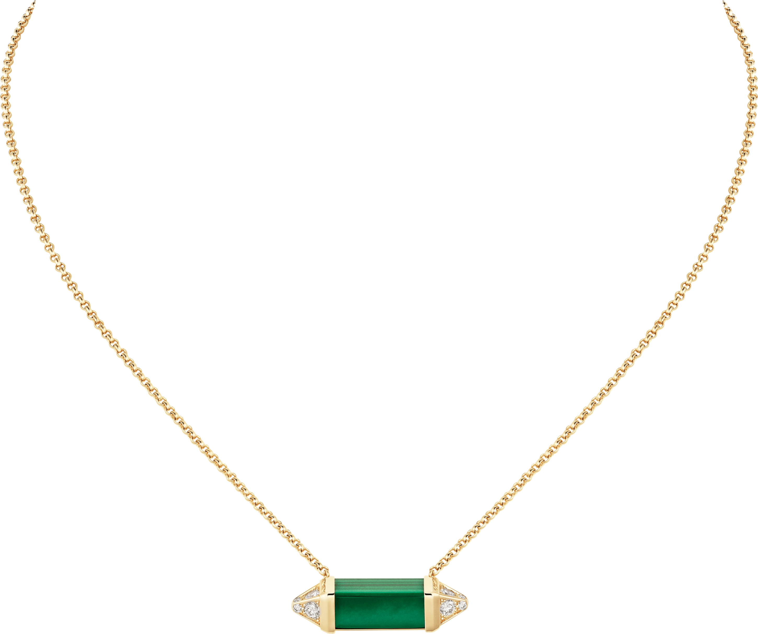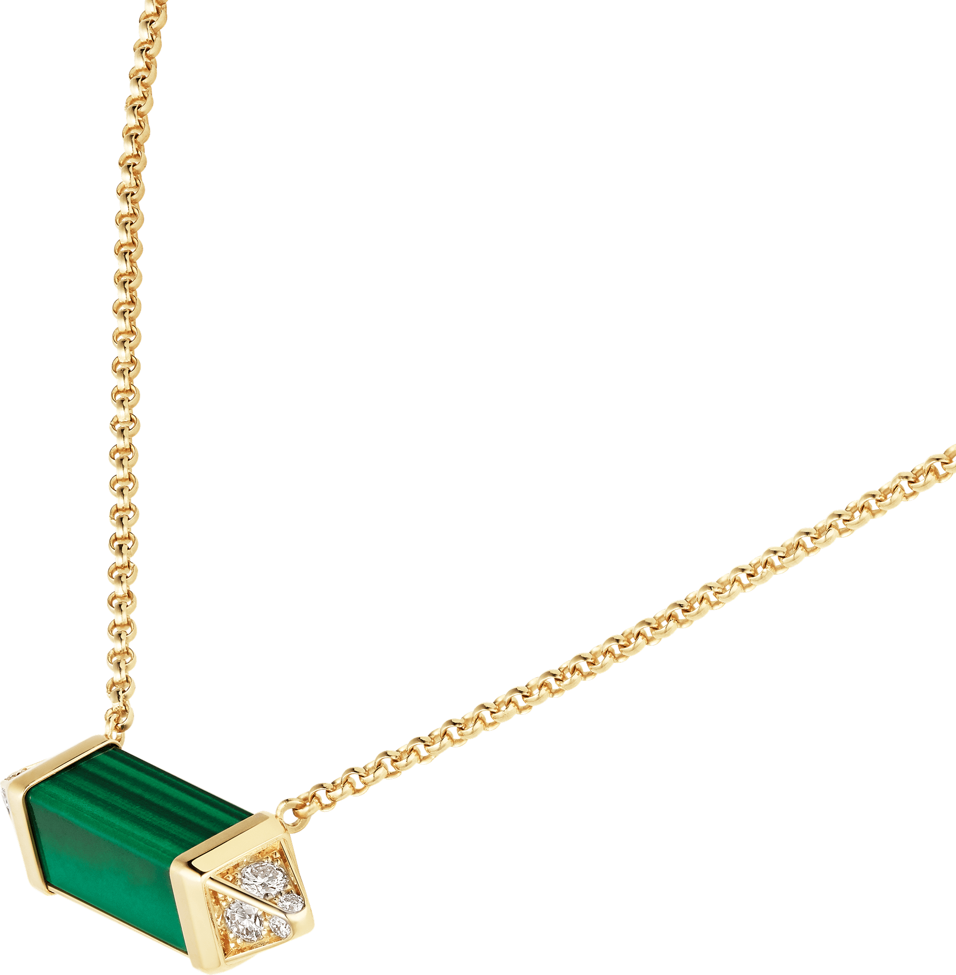 Collar Les Berlingots de Cartier, tamaño mediano, oro amarillo 750/1000, malaquita, engastado con 12 diamantes talla brillante con un total de 0,33 quilates.