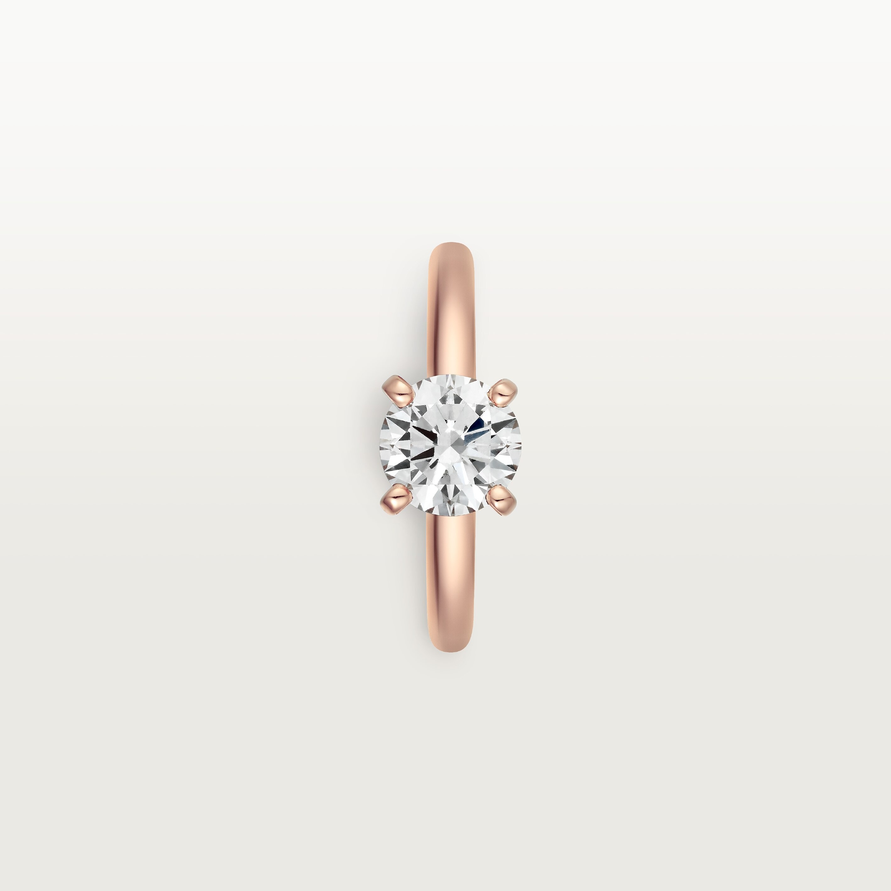 Un diamante Cartier es único. Piedra soberana, es la expresión de un savoir-faire marcado por la excelencia y la delicadeza. Solitario 1895, oro rosa 750/1000, engastado con un diamante talla brillante disponible de 0,23 a 0,34 quilates, de 0,40 a 0,44 quilates, de 0,50 a 0,59 quilates, de 1,00 a 1,15 quilates y de 1,50 a 1,69 quilates. Oro rosa, diamante