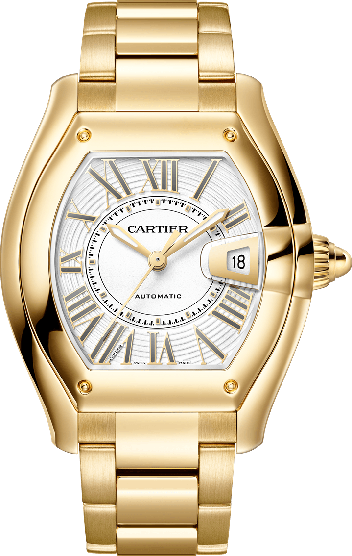 El Roadster está inspirado en el mundo de las carreras de coches de los años 50. La carátula aerodinámica de la caja es una marca de identidad de la época, mientras que las agujas luminiscentes en forma de espada, los números romanos y el cristal zafiro son características emblemáticas de Cartier. Adornado con una esfera de acabado satinado blanco o rosa, el Roadster encantará tanto a cualquier hombre como a mujer.