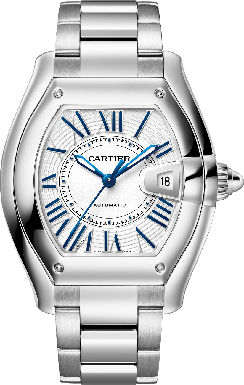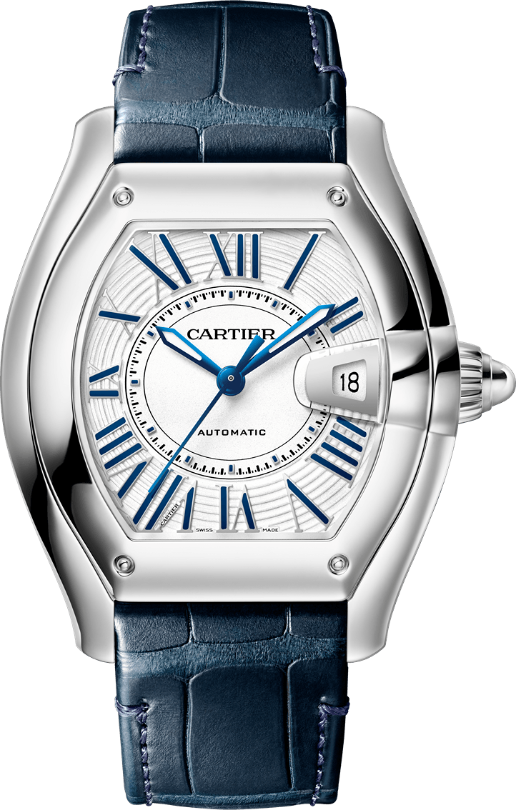 El Roadster está inspirado en el mundo de las carreras de coches de los años 50. La carátula aerodinámica de la caja es una marca de identidad de la época, mientras que las agujas luminiscentes en forma de espada, los números romanos y el cristal zafiro son características emblemáticas de Cartier. Adornado con una esfera de acabado satinado blanco o rosa, el Roadster encantará tanto a cualquier hombre como a mujer.